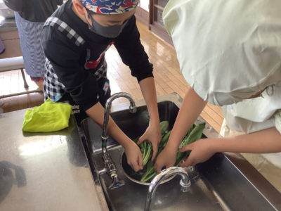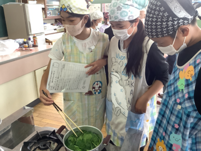 ほうれん草を入れるタイミングを考えたり、火加減を調節したりと、みんなで協力しながら調理実習をすることができました。