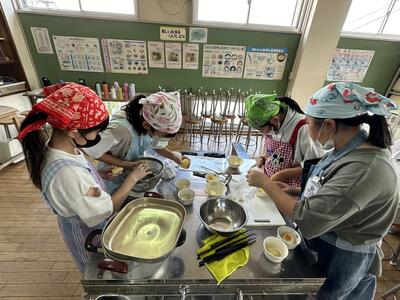 5年生は前回のゆで野菜(ほうれん草)に引き続き、ゆでたジャガイモ作りとゆで卵作りに挑戦しました。