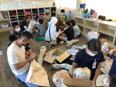 5年生では、総合の学習の時間に、かかしを作っています。授業時間だけでなく、昼休みもチームで集まり、役割分担をしながら協力して作業を進めています。ほとんどのチームが完成間近となりました。完成した作品が田んぼに並ぶのが楽しみです!