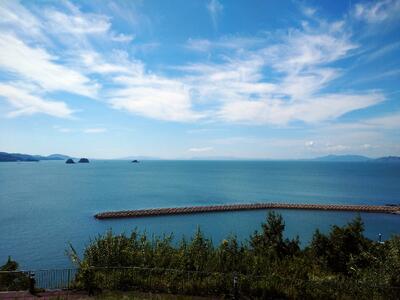 お天気もよく、海がキラキラしています。素敵な景色を見ながらお弁当を食べました。お昼からの活動に向けてエネルギーチャージ!