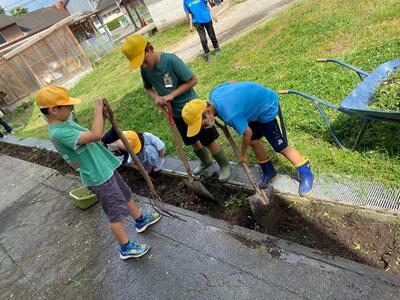 5月28日(火)の6時間目に、学級園の畑おこしをしました。スコップを使って硬くなった土を起こして、草をきれいに取り除きました。そよかぜ2組では、花と野菜を植えて毎日観察していきたいです。