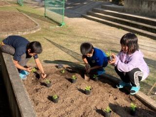 そよかぜ学級の花壇にナデシコの苗を植えました。20ポットほど植えるので、自分たちで花壇に苗を並べてみて苗と苗の間隔がちょうどいいか確かめたり、きれいに苗が並んでいるかを見たりしました。きれいなナデシコの花が咲くのが楽しみです。