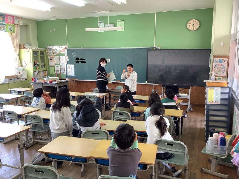 10月8日、2年生は新しいALTのレイチェル先生と一緒に外国語活動の学習をしました。レイチェル先生の母国であるアメリカ合衆国の文化や、ご家族のお話等を聞いて、興味津々の子どもたちでした。