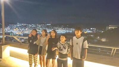 夜のイベントとして、ホテルの屋上から長崎の素晴らしい夜景を楽しみました。この後は部屋ごとに寝る準備をして就寝時間となります。