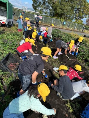 7日は学校近くのどろんこ広場でいもほりをしました!大きなおいもが沢山あって、子どもたちは、あまりの大きさにびっくりしていました。「植えた時は小さかったのに、こんなに大きくなった〜。」「巨大いもがとれた。」と、喜んでいました。たくさん収穫できたので、一人3個ずつ持って帰りました。今年は、豊作でした‼️