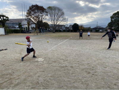 5年生は、現在ベースボール型ゲームを行っています。5年生になり、動く球を打つようになりました。チームの得点で争う競技なので、仲間のヒットやベースランニングを応援する子どもたちの声がグランドに響き渡っています。ミスやアウトのプレーに対しても、温かい励ましの言葉が聞かれ、上級生らしい活気ある授業になっています。