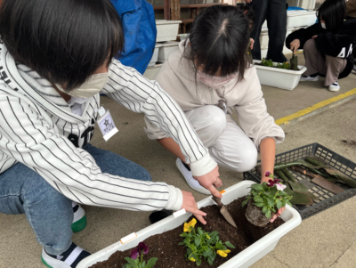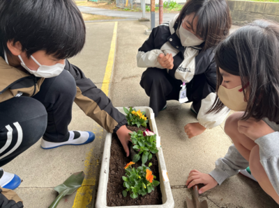 5年生は、「よく咲くスミレ」という花をプランターに植えました。花が傷つかないように優しく植えたり、元気に育つように水やりをしたりしていました。今日植えた花は卒業式と入学式で飾られます。3月に向けて、大きくきれいな花が咲くように、みんなでお世話を頑張りたいと思います!