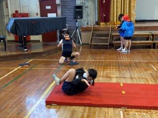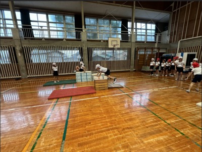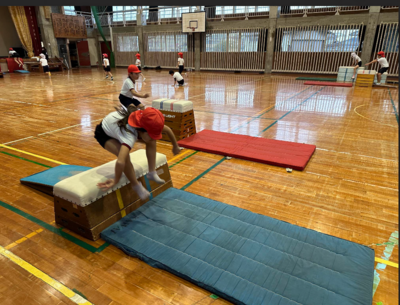 2年生は、『とびばこ』を学習しています。6種類のコースを作り練習をしています。手のつきかたや、着地の仕方など、それぞれの練習するポイントに気をつけて、元気に取り組んでいます。「先生見ててください。」と言って技を見せてくれます。思った通りに上手くできた時の笑顔がすてきです!