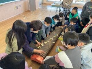 音楽の学習で,4年生は和楽器の琴について学習しています。