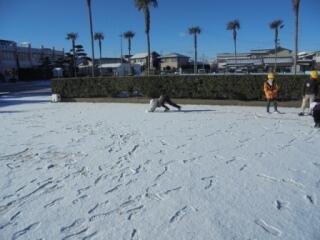 1月25日は、夜からの雪で運動場が真っ白でした。1時間目の体育の時間は、1組2組合同で雪合戦を行いました。サラサラした雪だったので雪玉を作るのに苦労していました。当たるとスノーパイウダーみたいに雪煙が上がり楽しい雪遊びになりました。