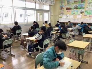 今日は、りゅうきんタイムに漢字大会を行いました。5年生は、50問の漢字の書き取りに挑戦しました。みんな満点を目指して頑張っていました。