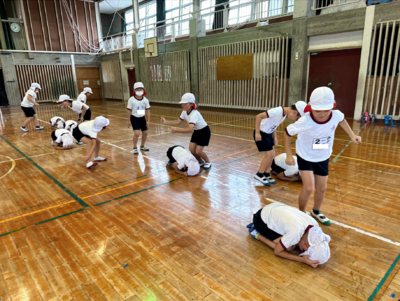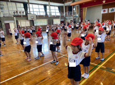 二学期になり、久しぶりの体育‼️みんなで「からだほぐしの運動あそび」をしました。丸まって小さくなった友達をピョンっと飛び越えたり、アシカのポーズをしたりして楽しく学習しました!最後は、1組対2組でドッジボールをして盛り上がりました!