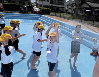 6月から始まる水泳学習に向けて、プール掃除をしました。集中して掃除を一生懸命頑張り、45分で小プールがピカピカになりました。最後の水浴びタイムもとても楽しそうな5年生でした。