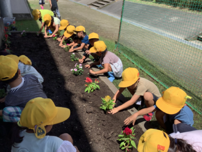 雨の合間をぬって学級の花壇に花の苗を植えました。サルビア、マリーゴールド、ケイトウなどこれから元気に咲き誇る花ばかりです。子ども達は、朝顔のタネ植えやかさつまいもの蔓刺しなどの体験をしてきたので手際よく植えることができました。これからもお世話をがんばります。