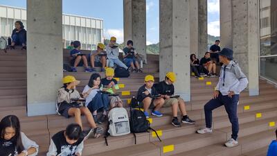 6年生は、理科の学習で球磨村に地層見学に行きました。地層を見て、自分たちの住んでいる場所の歴史や地形について学びました。実際に自分の目で見たり、触ったりすることでたくさんの気づきがあったようです。