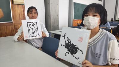 花、きつね、カブトムシ、タガメの中から1つを選んで作品づくりを楽しむことができました。