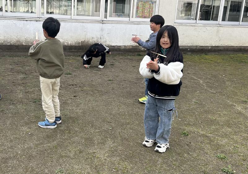 一年生は、地域の方に昔遊びを教えていただきました。コマ回しや竹とんぼ、ビー玉など10種類の昔遊びに挑戦しました。難しいものもありましたが、たくさんの遊びに触れ、親しみを持てたようです!