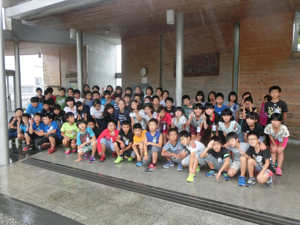 退所式の前に芦北青少年の家の入り口で撮影しました。