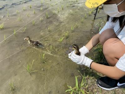 6月23日にアイガモ放鳥を行いました。初めてアイガモを見る子ども達はアイガモのかわいさに大興奮でした。