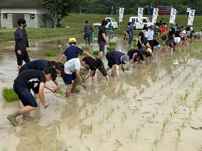 暑い中、5年生にとっては二度目の田植え体験。最後まで元気に田植えを頑張り通しました。田植機による田植え作業も見学できました。とてもかっこよかったです。これからも、かかし作りや稲刈り、竿がけ等の作業があります。しっかりと学んでいきたいと思います。