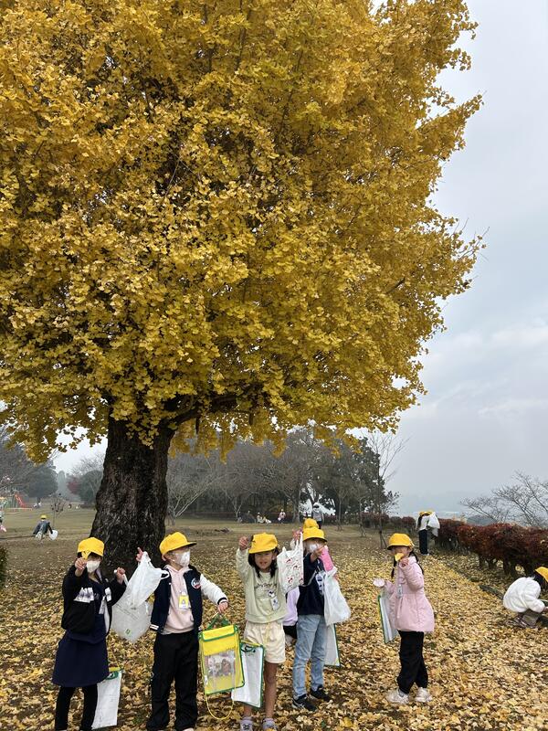1年生は、生活科の学習で、岡留公園へ秋探しに行きました。どんぐりやカエデ、イチョウなどを見つけて秋を感じたり、よく観察して絵に描いたりしました。拾ってきたどんぐりや葉を使ったお面作りやおもちゃ作りも楽しみにしている子どもたちです。