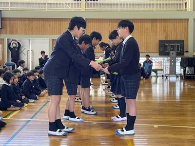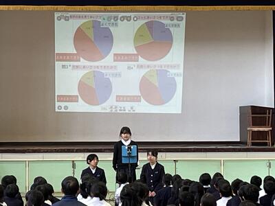 12月11日(木)の全校集会で保健委員会が発表をしました。