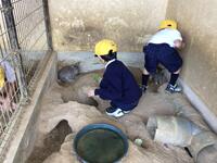 10月18日(水)に、生活科の「いきものとなかよし」の学習で、うさぎと遊びました。1年生は、8月・9月に飼育当番をし、少しうさぎと仲良くなったところでした。「こゆき」「プリン」「チョコ」と名付けられたうさぎの赤ちゃんもずいぶん大きくなりました。抱っこするのに赤ちゃんがちょうどよい大きさで、みんな恐る恐るですが触っていました。
