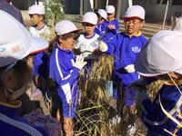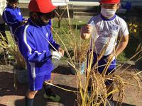 装飾古墳館の廣田先生にお世話になり、古代米(赤米・黒米)の収穫をしました。田植えから何ヶ月も、毎日みんなで水やりをしてきました。田んぼの水にホウネンエビを見つけて喜んだり、お米の花を初めて見て感動したり、稲穂が出てくる様子にびっくりしたり、たくさんの学びがあった古代米作りでした。収穫は、古代人のように石包丁を使ってしました。貴重な体験ができました。廣田先生、ありがとうございました。