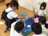 縁日の屋台にあるような魚釣りや射的、そしてモグラたたきやゴムの力でぴょんと跳ねるおもちゃなど、どれもたくさんの工夫がしてあって、「1年生がうれしそうに遊んでくれて楽しかったな」という声が聞こえてきました。