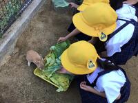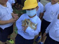 10月18日(水)に、生活科の「いきものとなかよし」の学習で、うさぎと遊びました。1年生は、8月・9月に飼育当番をし、少しうさぎと仲良くなったところでした。「こゆき」「プリン」「チョコ」と名付けられたうさぎの赤ちゃんもずいぶん大きくなりました。抱っこするのに赤ちゃんがちょうどよい大きさで、みんな恐る恐るですが触っていました。