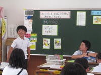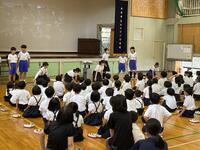 6月26日(木)の児童集会は、環境委員会主催の環境集会でした。「美しい学校にしよう」というめあてを達成するためには、一人一人が無言掃除に取り組むこと、時間いっぱいそうじをがんばることを目指そうと、劇やクイズを通して伝えてくれました。また、朝のちょこっとボランティアの草取り目標を決めて、ボランティアに参加することなどをみんなで確認しました。
