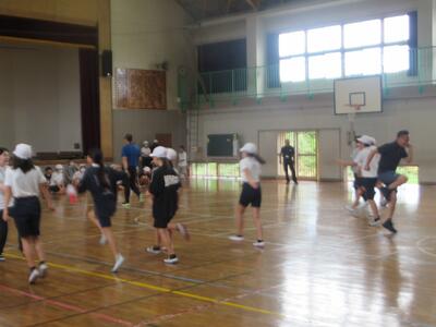 昨日の5時間目に6年生の体育がありました。10月30日の親睦陸上に向けての練習が始まりました。しかし、雨のために体育館で体を動かす授業だったようです。佐々木先生は、体育が専門で中学校の経験もあるため、陸上運動にむけた体を動かす運動を実施されました。これから種目を決めて、それぞれの種目で本番に向けた練習が始まります。暑さに負けず、自己ベストが出せるようがんばっていきましょう!