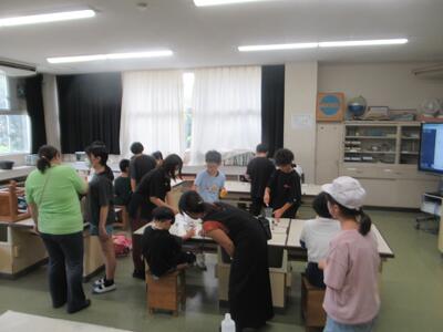 科学実験クラブはスライムづくりに挑戦していました。