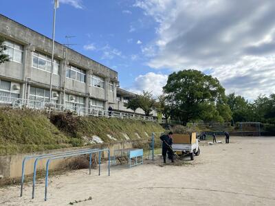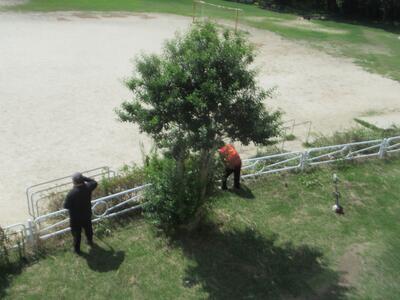 日曜日にPTA美化作業が予定されていますが、その前に本部役員の方々が作業に取り組んでくださいました。暑い中、校舎前のもっさりした木々をさっぱりとしてくださいました。少しずつ学校の方も除草作業に取り組んでいるところではありますが、敷地の広さから思うように進んでおらず頭を悩ませているところでした。いつもご協力ありがとうございます。当日もよろしくお願いいたします!