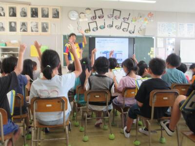 昨日午後からグリーンランドよりゲストティーチャーをお迎えして3年生が学習しました。3年生は、総合的な学習の時間に「荒尾の宝」ということで、荒尾なしやグリーンランドについて学習しています。今回、本校にとってとても身近なグリーンランドについて、いろいろ教えていただきました。グリーンランドの歴史や仕事の内容についてのほか、事前にお知らせしていた質問への回答をしていただきました。グリーンランドがより身近なものになった貴重な時間でした。お忙しい中時間をとっていただきありがとうございました!