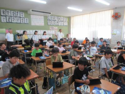 先週の火曜日に本校で情報教育の公開授業が行われ、たんぽぽ1組の西岡先生の授業を荒尾玉名の先生方が見に来られました。20名以上の先生に囲まれながらの授業ということで、子どもたちは大変緊張したと思いますが、2組の子どもたちも数名参加し、がんばってくれました。正しい情報の確かめ方について、災害の時を例にみんなで考えました。これからの時代を生きていく子どもたちにとって大切な学習の時間となりました。