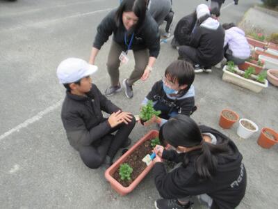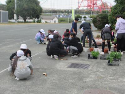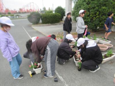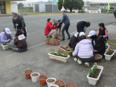 ここ数年恒例になってきた緑のバトンパス事業を昨日6年生が行いました。この事業は、荒尾市みどり推進協議会が子どもたちの過ごす学校の緑化を推進するとともに、植栽する花苗に卒業する子どもから在校生や新1年生へのメッセージを添えることを条件に花苗を配付することで、あとに続く者に対する思いやりの気持ちや、緑を残しそれを引き継いでいく心を育てる一助とするものです。今年もノースポールやキンギョソウを200ポットいただきました。それを6年生がきれいにプランターに植えてくれました。大切に育てて、6年生の卒業式に飾りたいと思います。