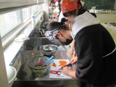 昨日、6年1組の調理実習がありました。今回は、副菜を作るということで、サラダ系の調理でした。さすが6年生です。ずいぶん手際よく作業ができるようになっています。ぜひおうちでもチャレンジしてください!