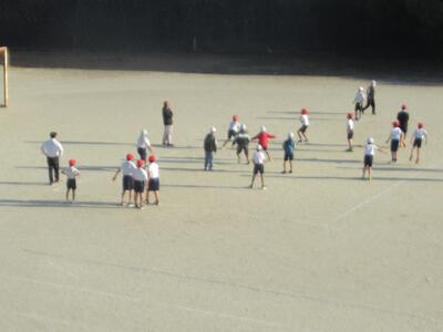 10月に6年生の陸上練習を応援してくれた岱志高校のみなさんが、今度は体育のティーボールの応援に来てくれました。最初にためしのゲームを行い、その後チームごとに練習という流れでしたが、高校生のお兄さんたちが大きな声で応援してくれたり、練習相手になってくれたりとお世話になりました。次回も来てくれるということで、6年生との交流が続きます。岱志高校のみなさん、ありがとうございます!