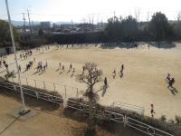 2時間目の休み時間に学年毎に分けて運動場で走っています。
