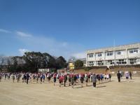 2時間目の休み時間に学年毎に分けて運動場で走っています。