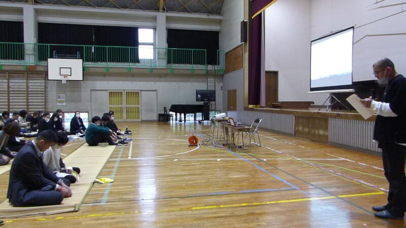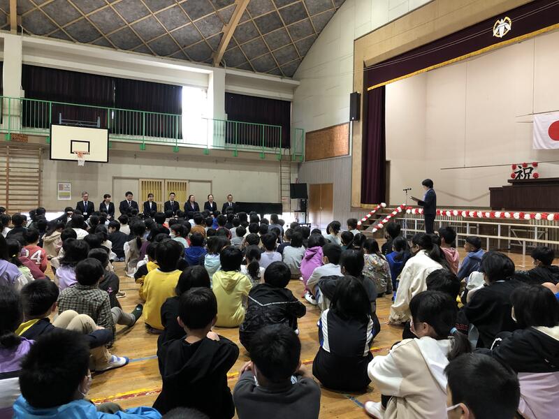 教育委員会の方や本校学校運営協議会の方々に見守られ、元気よくお返事もできました。