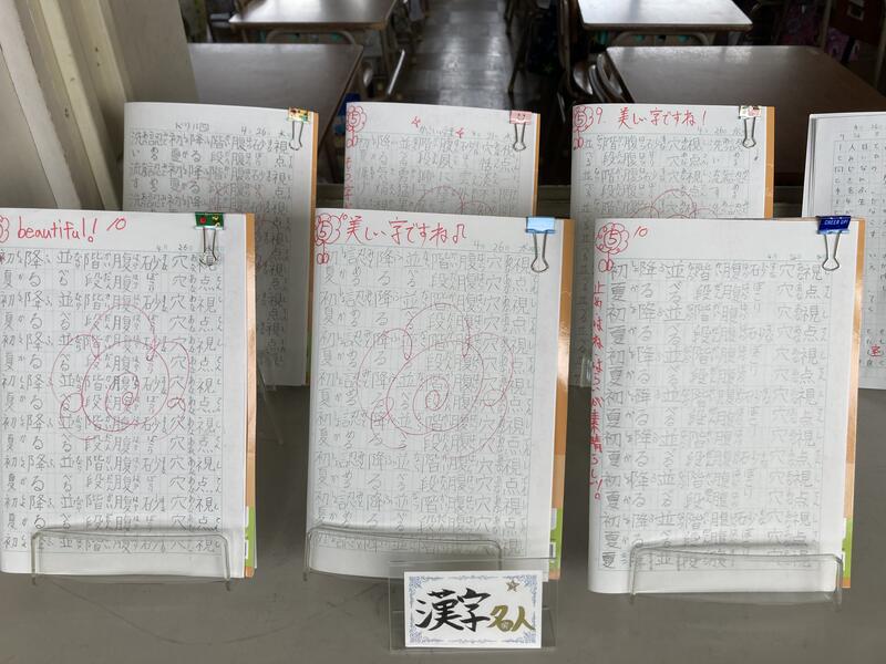 教室には、高学年ではグッド・ノートの掲示、低学年では春さがしのシートに先生のコメントが入って掲示してありました。子どもたちの頑張り・先生たちの熱意が伝わります。
