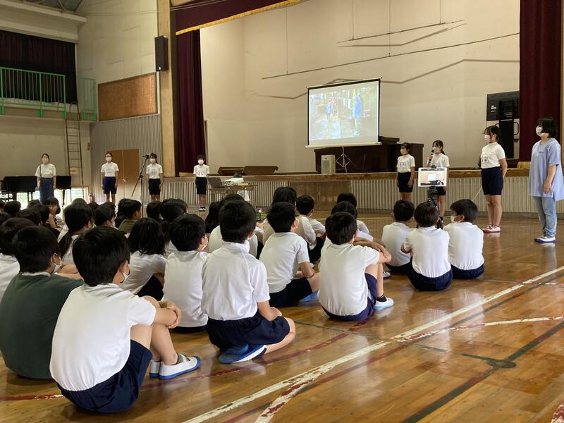 今日は本年度初めての全校集会でした。コロナの状況も変わり、全校児童が体育館に集合します。先生方は集会の教育的意味を大事に考え、どのように児童に参加させるか、4月のスタートから考えてきました。