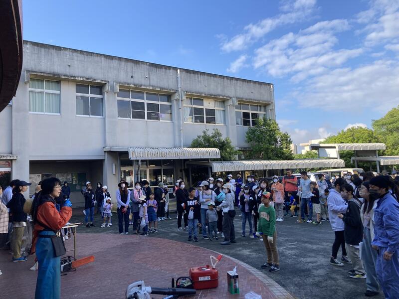 親子連れでのご参加も多くありました。多くの方に汗をかいていただいたおかげで、校地内は見違える美しさになりました。最後は6年代表の人の号令で、子どもたち全員、お家の方々に御礼を伝えることができました。改めまして、心よりありがとうございました。