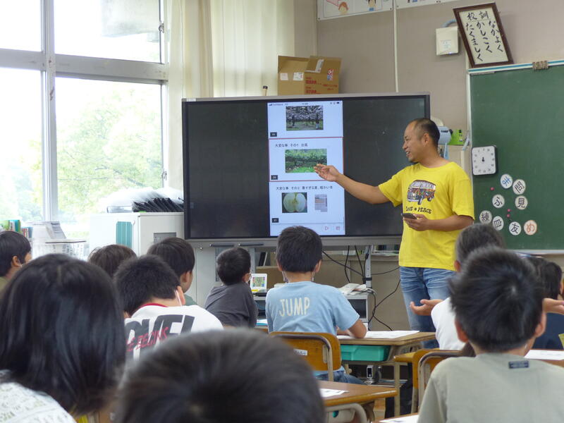 3年生が、総合的な学習の時間の一環で、荒尾梨について学習しました。