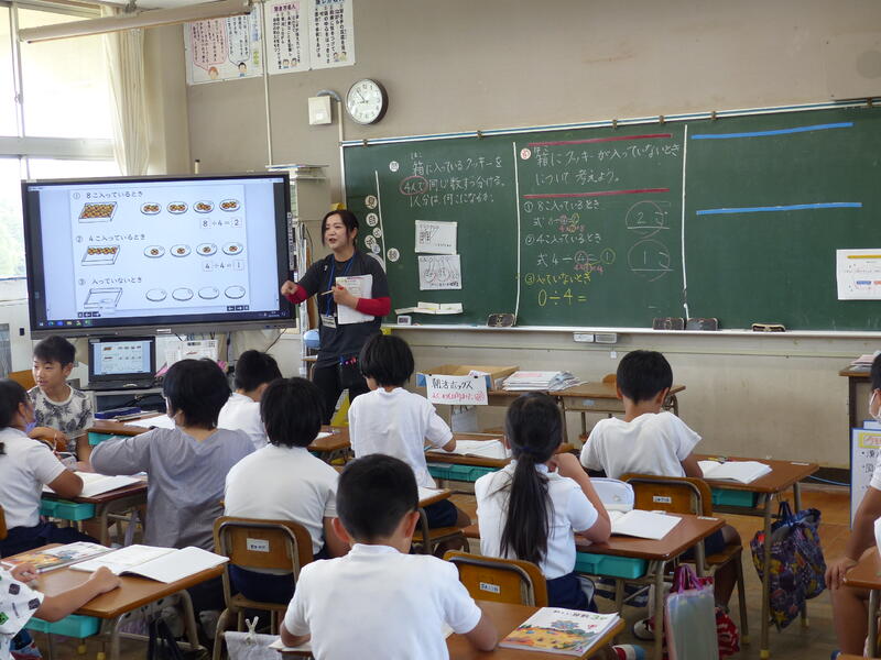 3年生は、0÷4をするとどうなるのか考えていました。算数少人数の先生が配置となり、指導体制が更に充実しました。