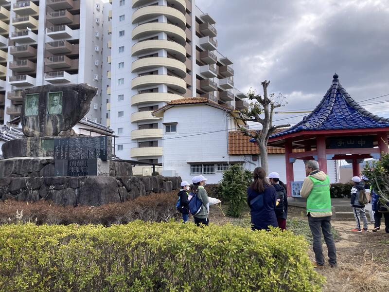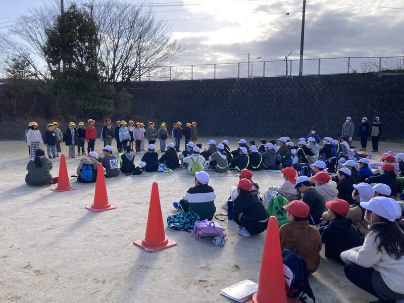 広い校区であり、自分たちの住むエリア以外はなかなか知らないものです。登校班で地域を歩きながら、ポイントごとに説明を聞き、たくさんの発見があったのではないかと思います。