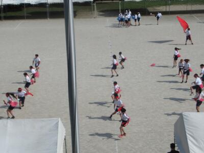 昨日は、最後の全体練習でした。前日の雨で、体育館での実施も検討しましたが、なんとか使用できそうだったので運動場で行いました。最後の練習は、閉会式と応援合戦でした。急遽、開・閉会式のアナウンスを6年児童が担当することになりましたが、上手にアナウンスしてくれました。応援団も、おとといより気合の入った演武を見せてくれました。いよいよ明日が本番です。あとは雨が降らないことを祈るばかりです!