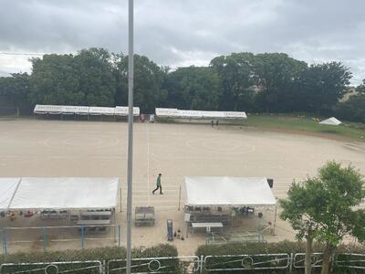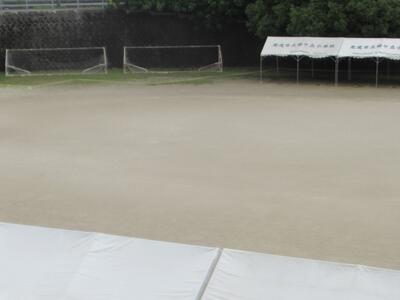 今日は予報通りの雨でした。子供たちもがっかりしていたようです。特に、登校時は激しく降り、車での送迎もいつもより多かったようです。14:10現在、運動場の状態も回復傾向にあります。西側のコーナーのところにはまだ水たまりもあるようです。このまま雨があがってくれれば、明日の朝から準備も間に合いそうです。がんばってきた子供たちのために、ぜひ明日実施できることを願います!